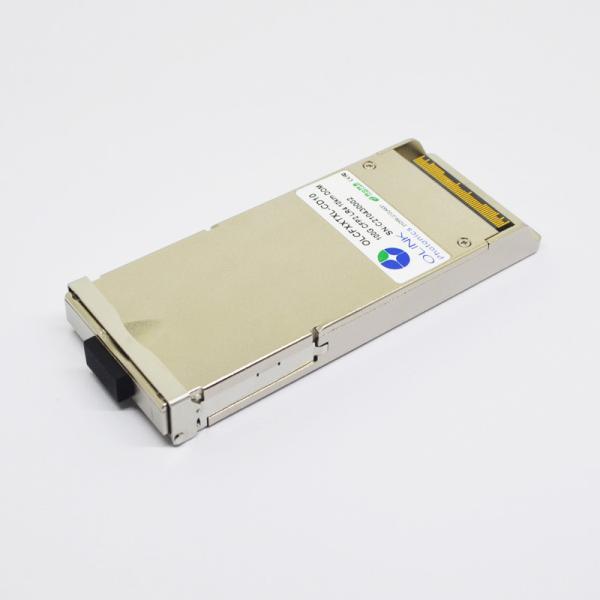 Olink’ OLCFXXTXL-CD10, 100G CFP2 LR4 optical transceiver integrates the transmit and receive path onto one module. On the transmit side, four lanes of serial data streams are recovered, retimed,and passed on to four laser drivers, which control four electric-absorption modulated lasers (EMLs) with 1296, 1300, 1305, and 1309 nm center wavelengths. The optical signals are then multiplexed into a single-mode fiber through an industry-standard LC connector.On the receive side, 4 lanes of optical data streams are optically demultiplexed by an integrated optical demultiplexer. Each data steam is recovered by a PIN photodetector and transimpedance amplifier, retimed, and passed on to an output driver. This module features a hot-pluggable electrical interface, low power consumption, and MDIO management interface.